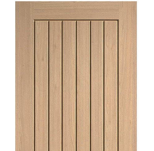 - Style: Classic 6 panel design in pre-finished oak veneer, featuring U cut grooves to give a cottage style