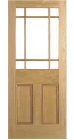 The LPD Downham Unglazed Oak Internal Door arrives unfinished, providing you with the opportunity to customise it with your preferred stain or varnish. The Downham door, once glazed features an unfinished white Oak wood and nine piece glazed panels with decorative blue corners. NB: The Glass pack is sold separately.