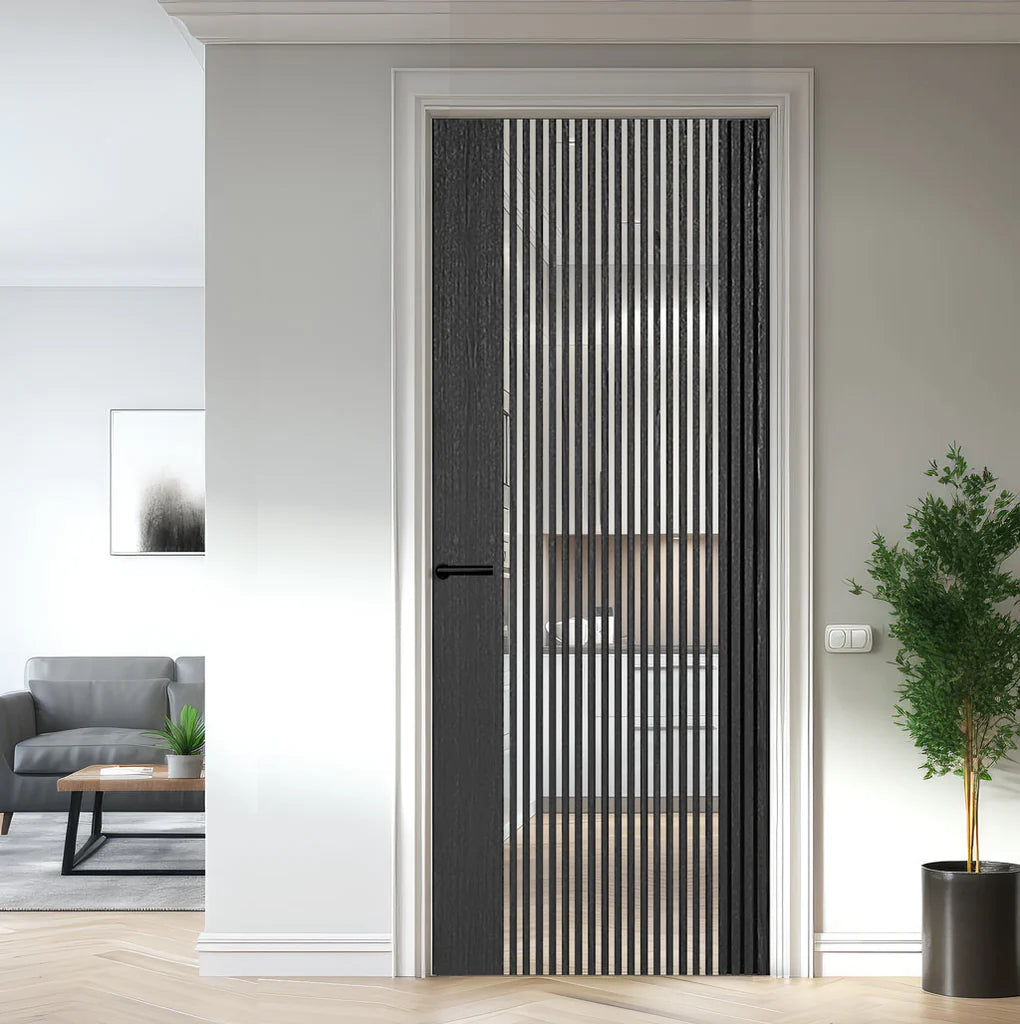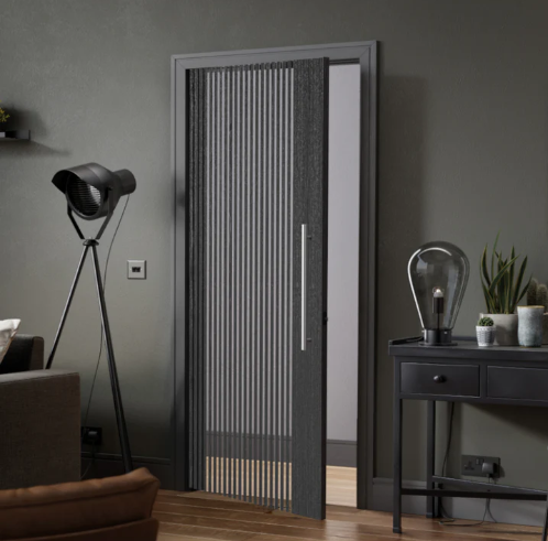 The LPD Ash Grey Melbourne Glazed Pre-Finished Internal Door. Available in a contemporary and stylish Pre-finished Ash Grey, this internal door is prepped for immediate hanging. The Melbourne boasts a distinctive and fashionable design, ideal for expansive areas. With its deep square-cut, vertical grooves spanning the door, the texture and appearance are sure to make a striking statement in your home.