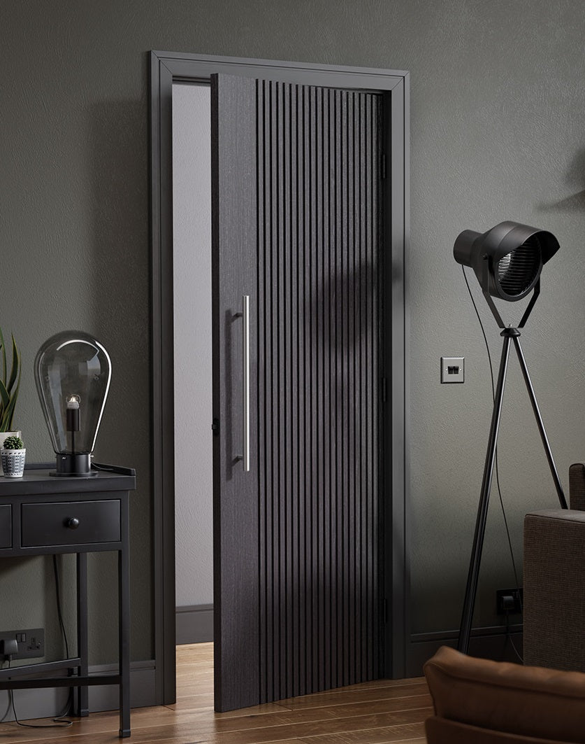 The LPD Ash Grey Melbourne Pre-Finished Internal Door. Available in a contemporary and stylish Pre-finished Ash Grey, this internal door is prepped for immediate hanging. The Melbourne boasts a distinctive and fashionable design, ideal for expansive areas. With its deep square-cut, vertical grooves spanning the door, the texture and appearance are sure to make a striking statement in your home.