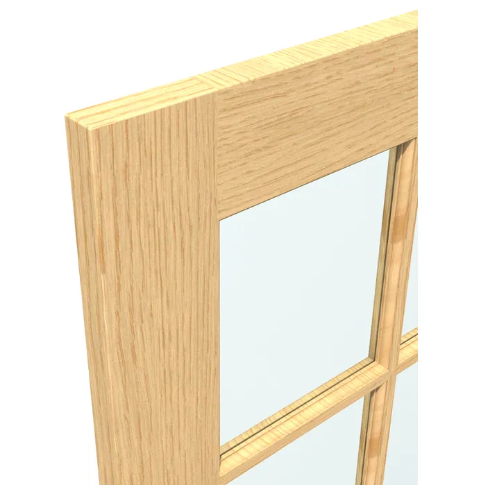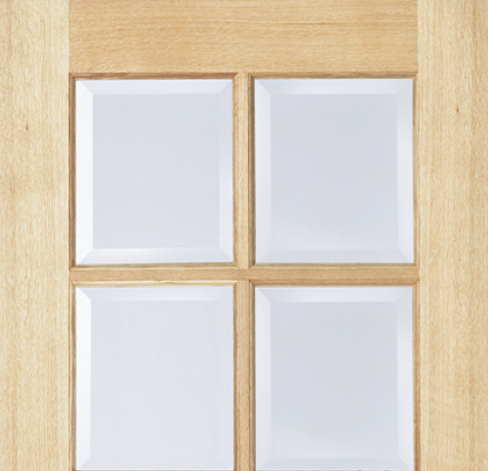 - Style: Classic panel design in unfinished oak veneer and clear safety glass