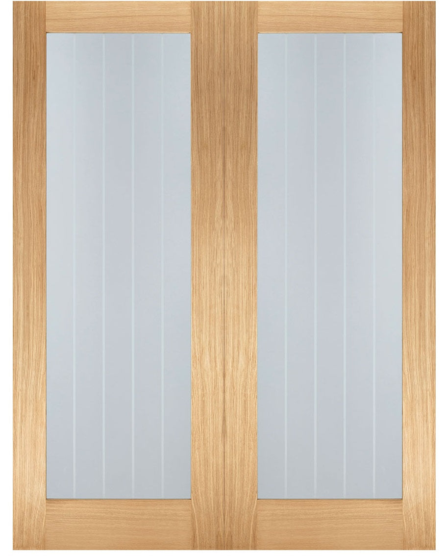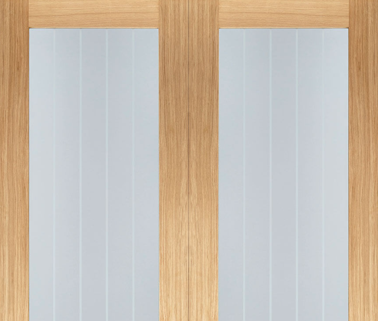 The LPD Mexicano Pattern 10 Glazed Pair. A sophisticated choice to modernise your interiors. These doors, when placed together, form a sleek and contemporary aesthetic. Featuring clear glazing with frosted lines, these doors allow light to effortlessly flow between rooms, adding both style and functionality to your space.