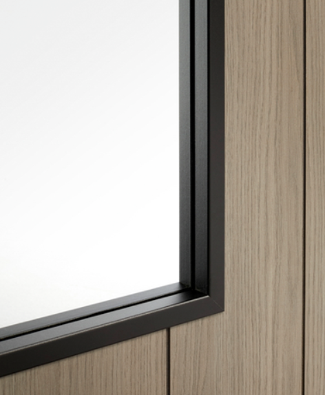 - Style: Classic panel design featuring one long glass panel & solid black inlays down the edges