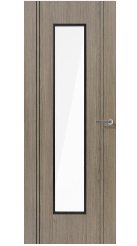 The LPD Monaco 1L Glazed Light Grey Laminate Internal Door. In Pre-finished light grey, this laminate internal door is ready to hang. Featuring solid black inlays down the edges which enhances the contemporary look. The vertical clear glazed panel will allow natural light to flow throughout your home, making rooms seem brighter.