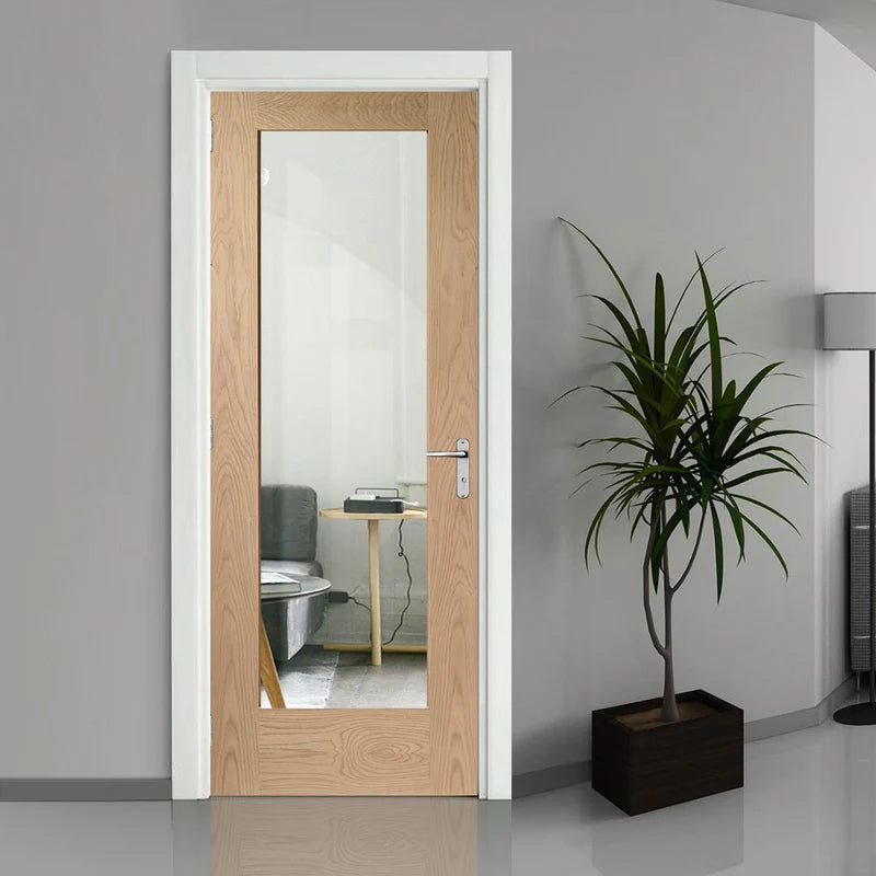 The LPD Pattern 10 Clear Glazed 1L Oak Internal Door is made from untreated Oak, providing you with the opportunity to customise it according to your preferences. Featuring a spacious central panel in clear glass, it's an ideal choice for rooms where you aim to enhance natural light. Its straightforward design seamlessly complements any decor style.