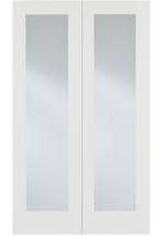 The LPD Pattern 20 Glazed White Primed Door Pair. Effortlessly practical, the Pattern 20 White Pair doors offer an ideal solution for dividing two rooms. With their sizable clear glass panels, they create the impression of spaciousness while facilitating ample light transmission between rooms. Supplied with solid 20mm lippings all around, these doors can be easily trimmed to fit your specific opening size.