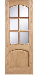 - Style: Louis Style Oak Door featuring six clear bevelled glazed panels and raised moulding on both sides