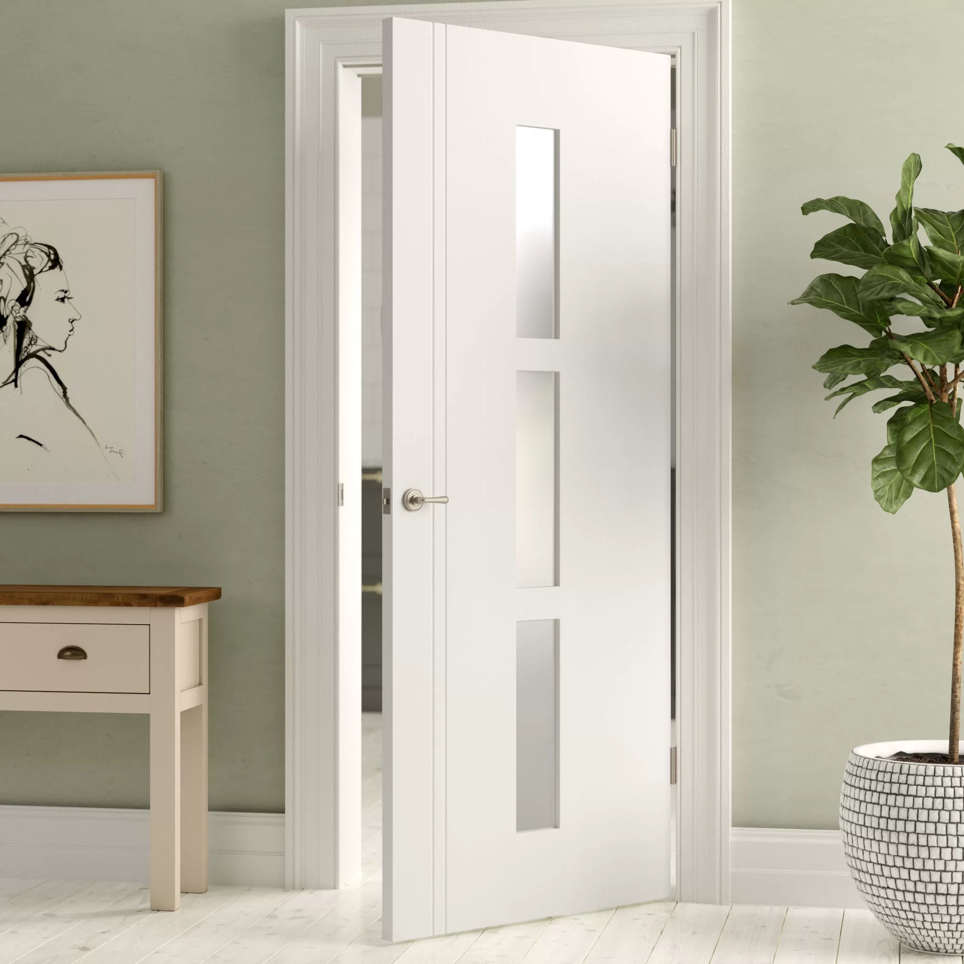 The LPD Sierra Blanco Glazed White Composite Internal Door is constructed from a Pre Finished Composite with a solid core. Ideal for minimalistic interiors, this Sierra door design Made from a pre-finished composite in white, this Sierra door features easy clean laminated frosted glazed panels and decorative vertical bars. This is a versatile option for you and the panelled design helps to form a sophisticated, sleek look.