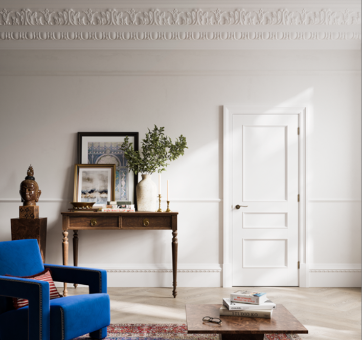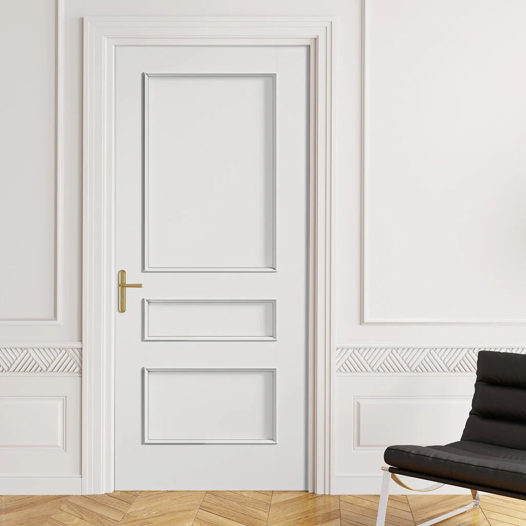 The LPD Toledo 3 Panel Traditional White Primed Internal Door showcases a timeless style accentuated by panel details. With its pristine white primed coating it offers options for customisation and ready for painting, this interior door radiates a grand traditional charm. Adorned with three panels adorned with raised bolection mouldings, this white primed internal door exudes a classic appeal that complements traditional interiors beautifully.