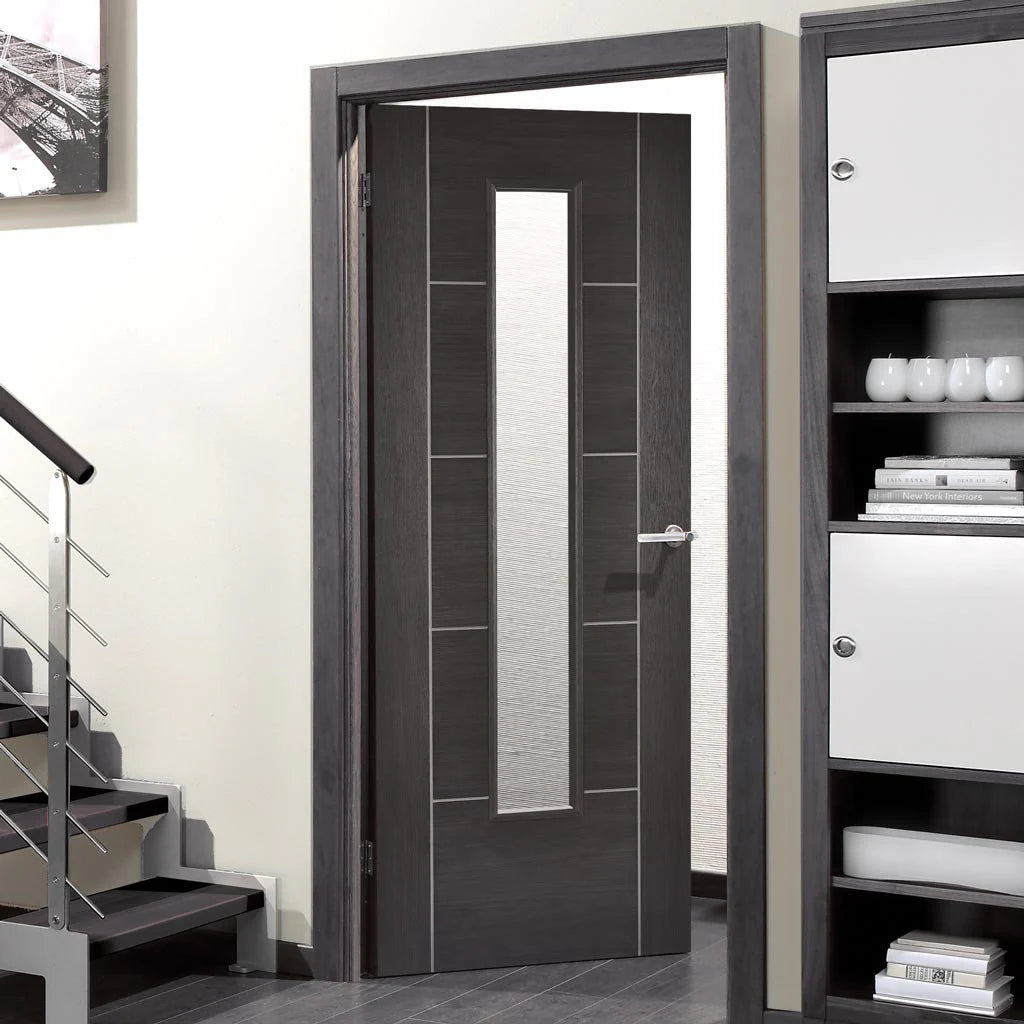 LPD Vancouver Glazed Medium Grey Laminate Internal Door - Fully Finished