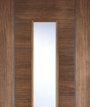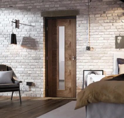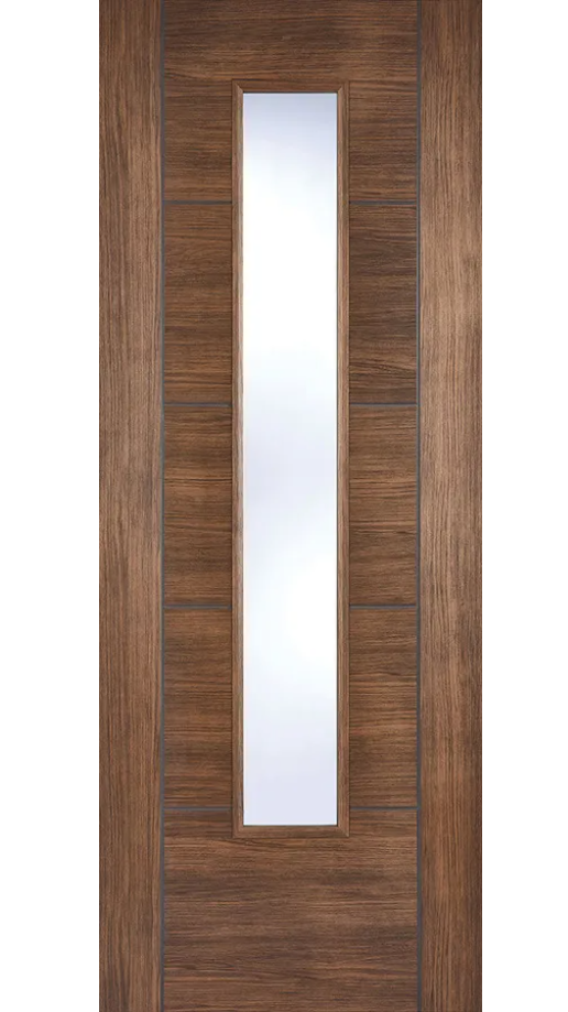 The LPD Vancouver Walnut Laminate Internal Door comes in a pre-finished Walnut texture. LPD's highly sought-after Vancouver design, now in Walnut laminate, elevates this contemporary door with a slim, vertical clear glazed panel. Crafted with premium laminate, it ensures a smooth and consistent finish.