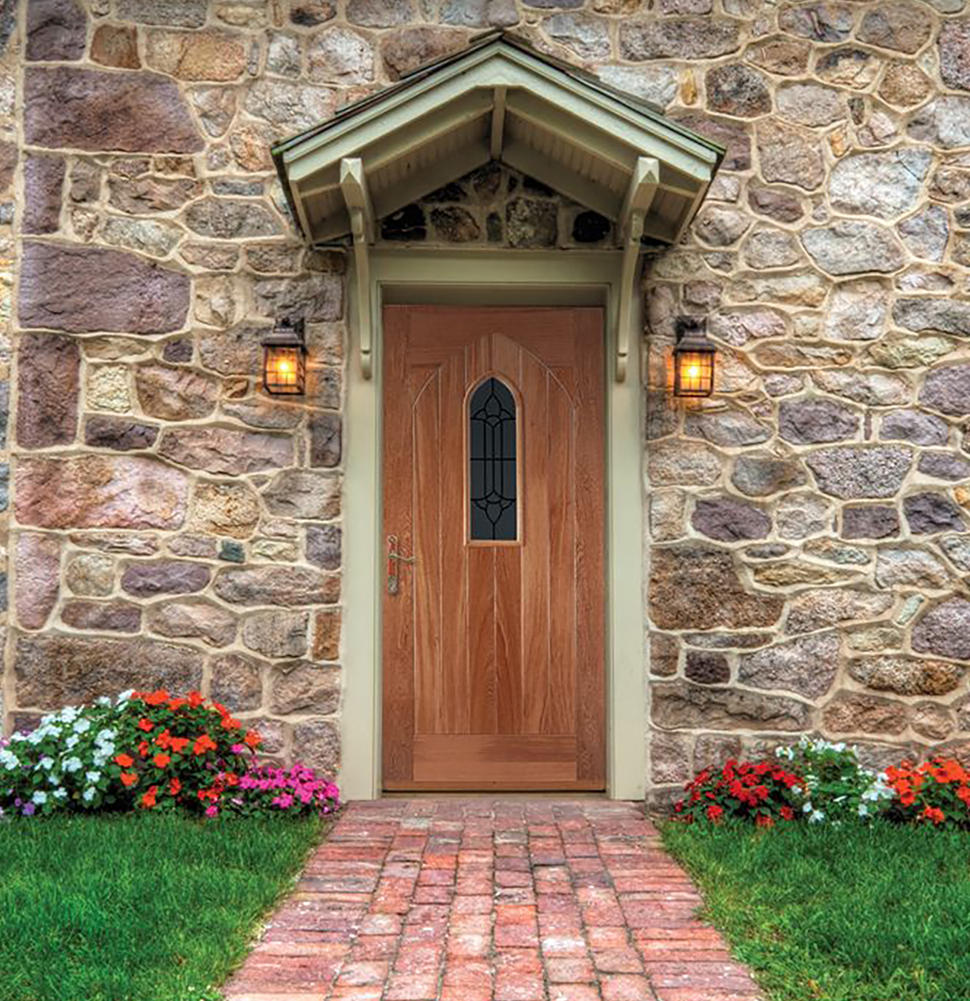 - Style: Features a leaded double-glazed panel with a curved top