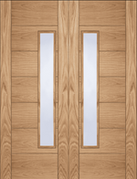 The Mendes Corsica 18G Offset Glazed FD30 Fire Door Pair comes pre-finished and ready to hang, making installation quick and simple. The Oak Corsica 18G Offset Pair is a glazed design that is available in a range of finishes. With feature V grooves and a decorative crown-cut veneer this door is perfect for those looking for something new.